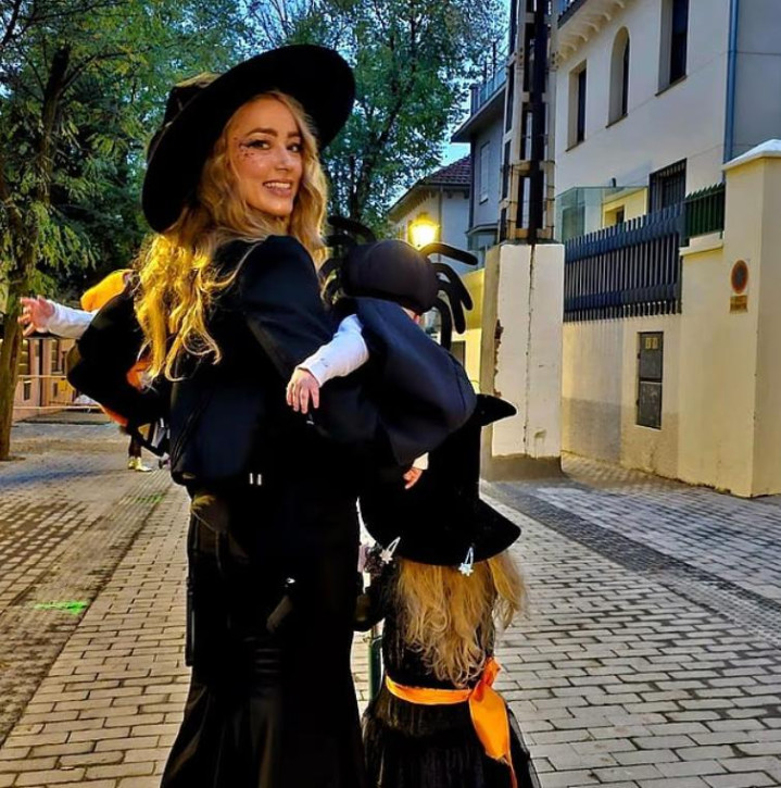 显然,希尔德很享受在西班牙的隐居生涯,她也经常在酬酢媒体上共享我方带娃的像片。其中一张像片自大,希尔德正在餐桌旁用功着,俨然一位家庭主妇的阵势;还有她在万圣节律摄的像片,这位母亲穿戴一件玄色连衣裙,怀里抱着两个小宝宝,手里还牵着一个小女孩,看上去罕见幸福。