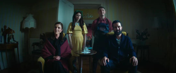 萝宾在走廊看到一组家庭合影,相片里东谈主物造型,让东谈主感到说不出的违和。