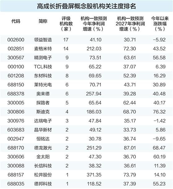 A股商场折叠屏办法股系数有110多只,其中领益智造、麦格米特、精测电子等办法股获机构一致预测今明两年净利润增速均超30%。