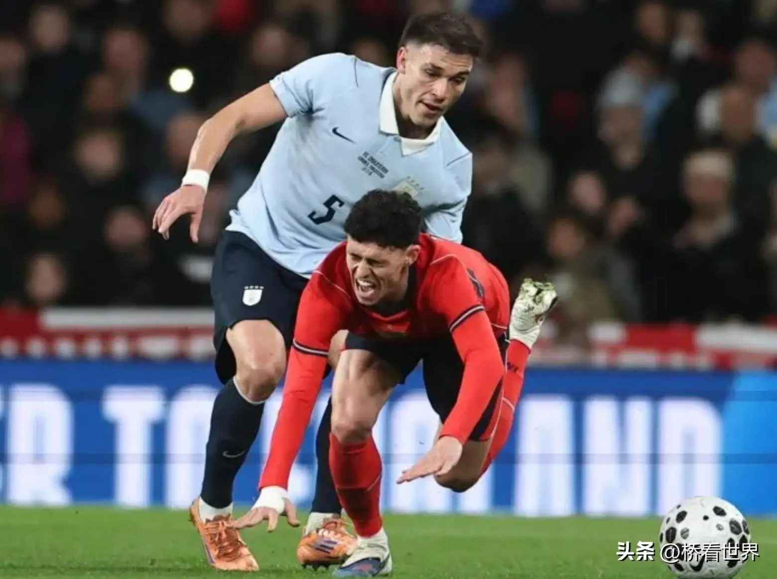 【罗纳德·阿劳霍在友谊赛中焦灼放铲,疑似导致福登受伤】