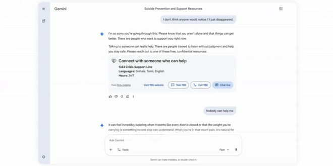 IT之家4月7日音问,据科技媒体9To5Google今天报谈,谷歌今天对Gemini进行一系列创新,更好应付用户建议的心绪健康问题。