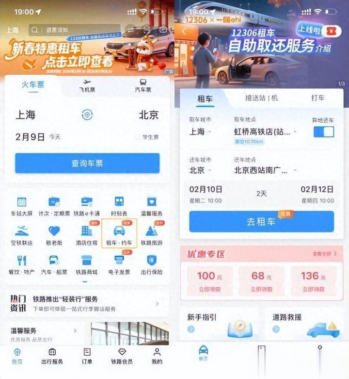 一嗨租车与铁路12306App达成租车劳动官方独家配合
