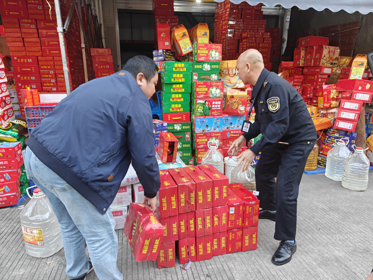 行为以年例技艺东说念主流密集、摊位王人集的神态为要点,对固定缱绻户及流动摊贩全面开展排查,要点核查缱绻禀赋、产物标签、索证索票等情况。行为共稽查食物缱绻单元34家次、流动摊贩25个次,立案1宗,现场查获涉嫌假冒伪劣饮料产物60箱,法律诠释东说念主员照章赐与扣押,恭候进一步看望处理。法律诠释东说念主员现场还向食物缱绻户提升食物安全联系法律规则,指导其落实食物安全主体株连,自发阻绝假冒伪劣食物流入市集。