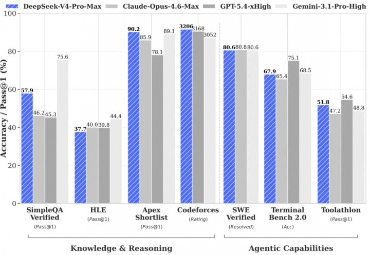 DeepSeek-V4-Pro:性能并列顶级闭源模子