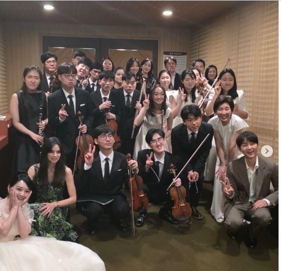 宋仲基(下排右一)首度带爱妻凯蒂(下排左二)出席公开步履。