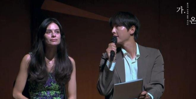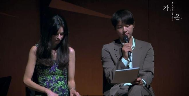 宋仲基(右)首度与爱妻(左)一同公开亮相,现身首尔艺术殿堂。 (图/翻摄自youtube@gaon soloists)