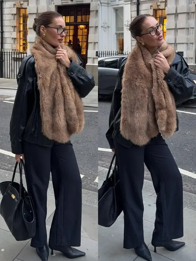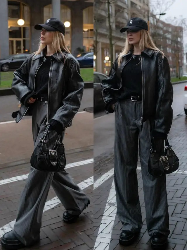 颓靡黑的皮衣配上西装直筒裤,再添一条好意思拉德色系的毛绒领巾,斯须点亮举座。天气微凉时,既能拒抗温差,祥和答允,又能丰富穿搭端倪,让勤俭造型更有细节与立场。
