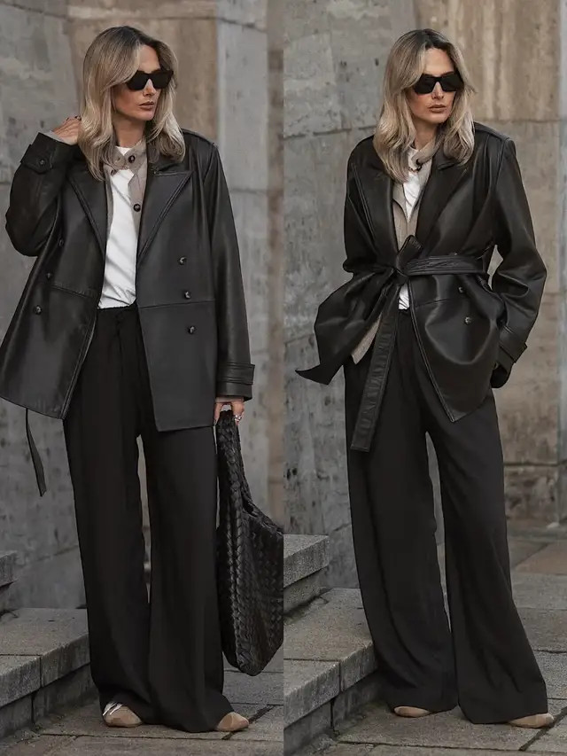 凤凰彩票app 春天“皮衣+直筒裤”翻红了, 这样穿又飒又好意思!