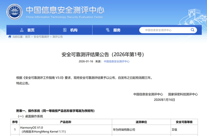 鸿蒙桌面操作系统(HarmonyOSV1.0)在安全限制杀青了国产桌面OS的突破,凭借中国信息安全测评中心《安全可靠测评扫尾公告(2026年第1号)》中惟一通过Ⅱ级评测认证的得益,成为首个达到该品级的国产桌面操作系统,记号着国产操作系统的安全发展迈入新高度。同期,依托软硬协同和鸿蒙内核的苍劲时间底座,该系统还取得海外CCEAL6+文凭,杀青了国度级巨擘认证与海外最高安全认同的双重加持。